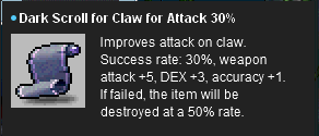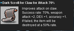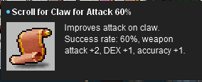 2. Same for scroll for staff/wand for magic attack 50%. The stats give 3ma+2int (unlike the +2luk in the scroll description).